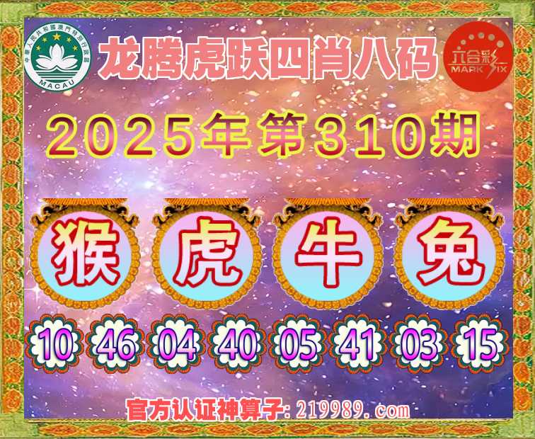 310期:『龙腾虎跃』 🎖️四肖八码🎖️【猴虎牛兔】开:00准