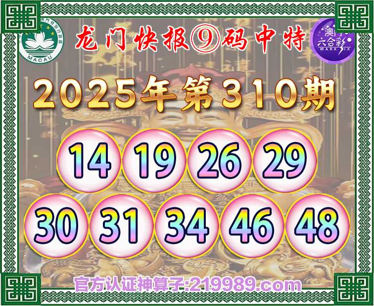 310期: 😳《龙门快报》 😳⑨码中特😳开:00准