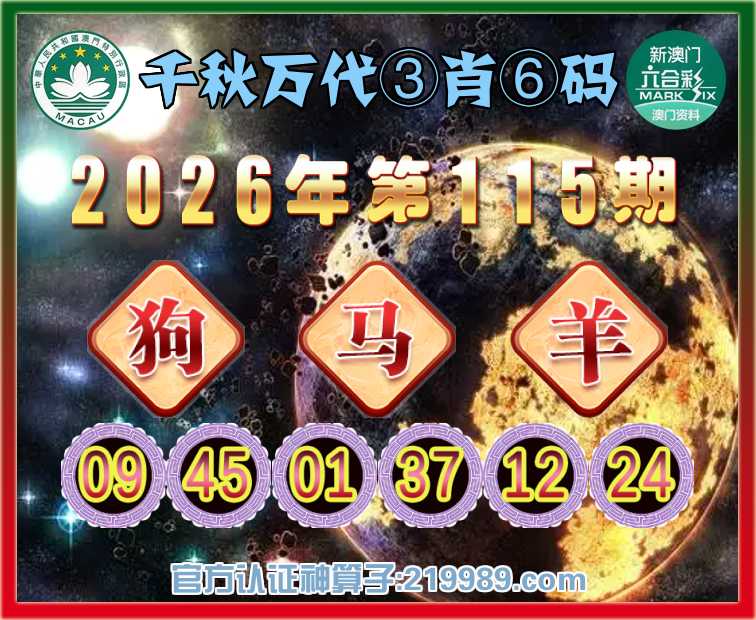 115期:『千秋万代』 🥽③肖⑥码🥽【狗马羊】开:00准