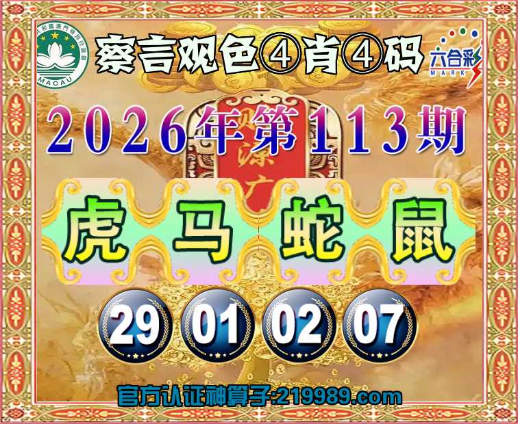 113期:【察言观色】 🥉④肖④码🥉【虎马鼠】【29.01.02.07】开:蛇02