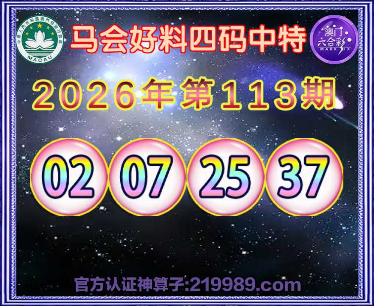 113期:《马会好料》 😜四码中特😜【02.07.25.37】开:02